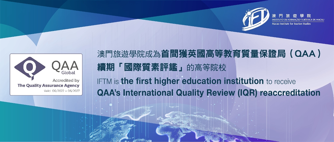英国独立质量及国际高等教育质素保证领域的领先者 ― 英国高等教育质量保证局(QAA)给予澳门旅游学院续期「国际质素评鉴」,使学院成为全球首间获得此续期认证的高等教育院校。