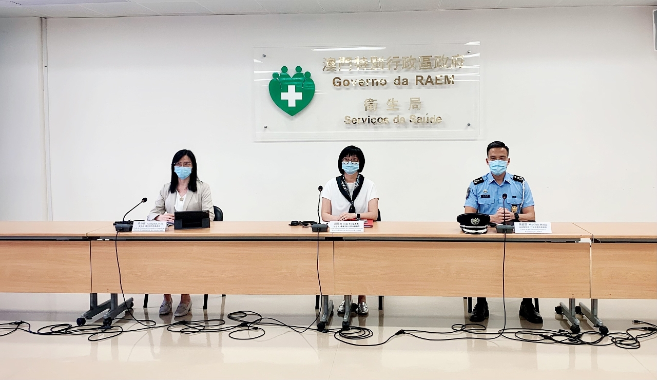 新型冠状病毒感染应变协调中心8月8日举行记者会,旅游局传播及对外关系厅刘凤池厅长、卫生局疾病预防及控制中心传染病防控处梁亦好处长、治安警察局行动及通讯处马超雄处长分别介绍了本澳的整体防疫情况。