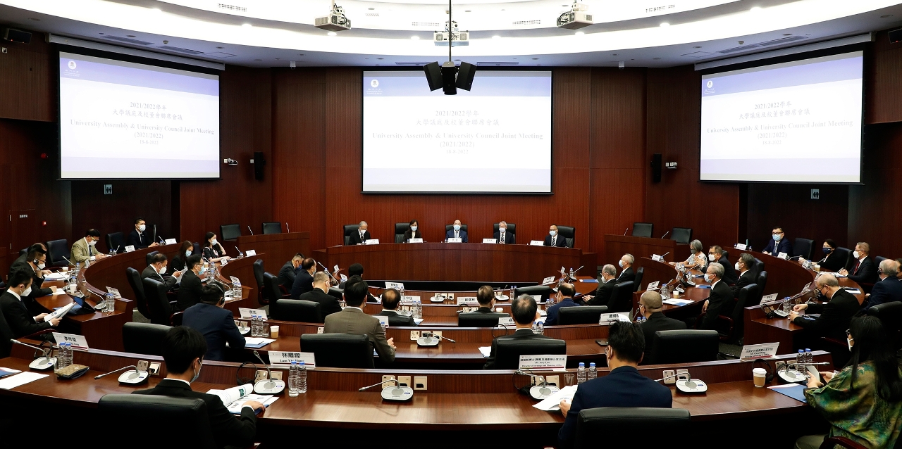 澳门大学2021/2022学年大学议庭及校董会联席会议在8月18日于澳大何贤会议厅举行,由澳门特别行政区行政长官、澳大校监兼大学议庭主席贺一诚主持。校监在发言时强调,特区政府已公布澳门第二个五年发展规划,为澳门未来发展描绘了总体蓝图,并为高等教育朝市场化方向发展及科研成果转化创造条件。澳大应立足国家和澳门实际需要,透过优质教育、重点研究、创新产学研模式、社会服务等助力澳门经济社会可持续发展。