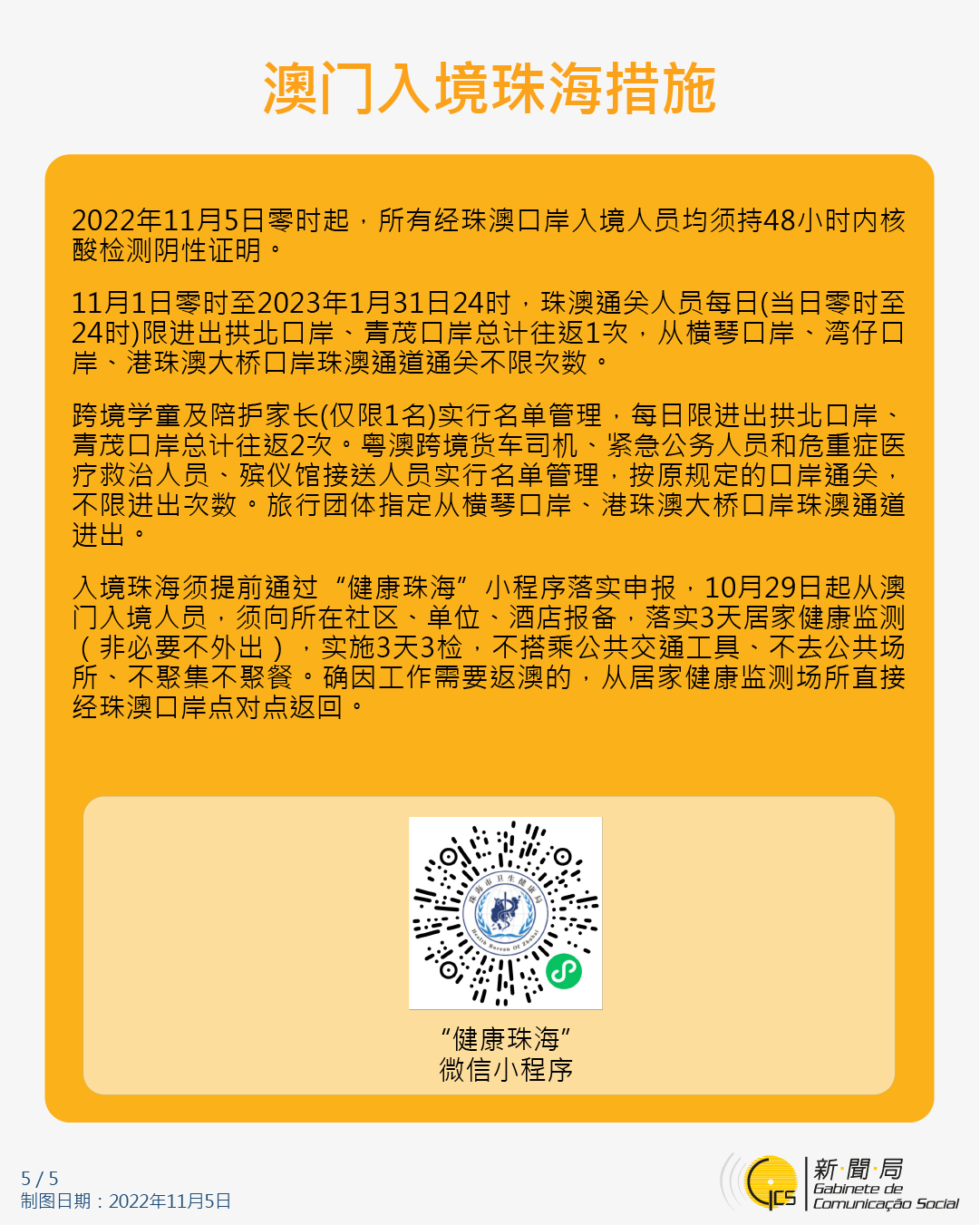【图文包】最新入境澳门的防疫措施 (2022/11/5)