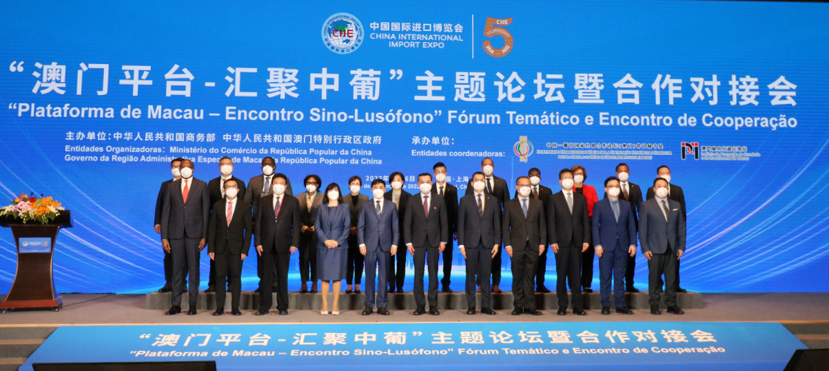 由中国商务部和澳门特别行政区政府主办,中葡论坛常设秘书处和澳门贸易投资促进局承办的“澳门平台—汇聚中葡”主题论坛暨合作对接会于11月6日在第五届中国国际进口博览会期间举行。活动设主题论坛、讨论环节及商业配对交流。中国商务部李飞部长助理和澳门特别行政区政府经济财政司李伟农司长分别致辞。逾百位中国内地和澳门特区政府与企业代表与会。