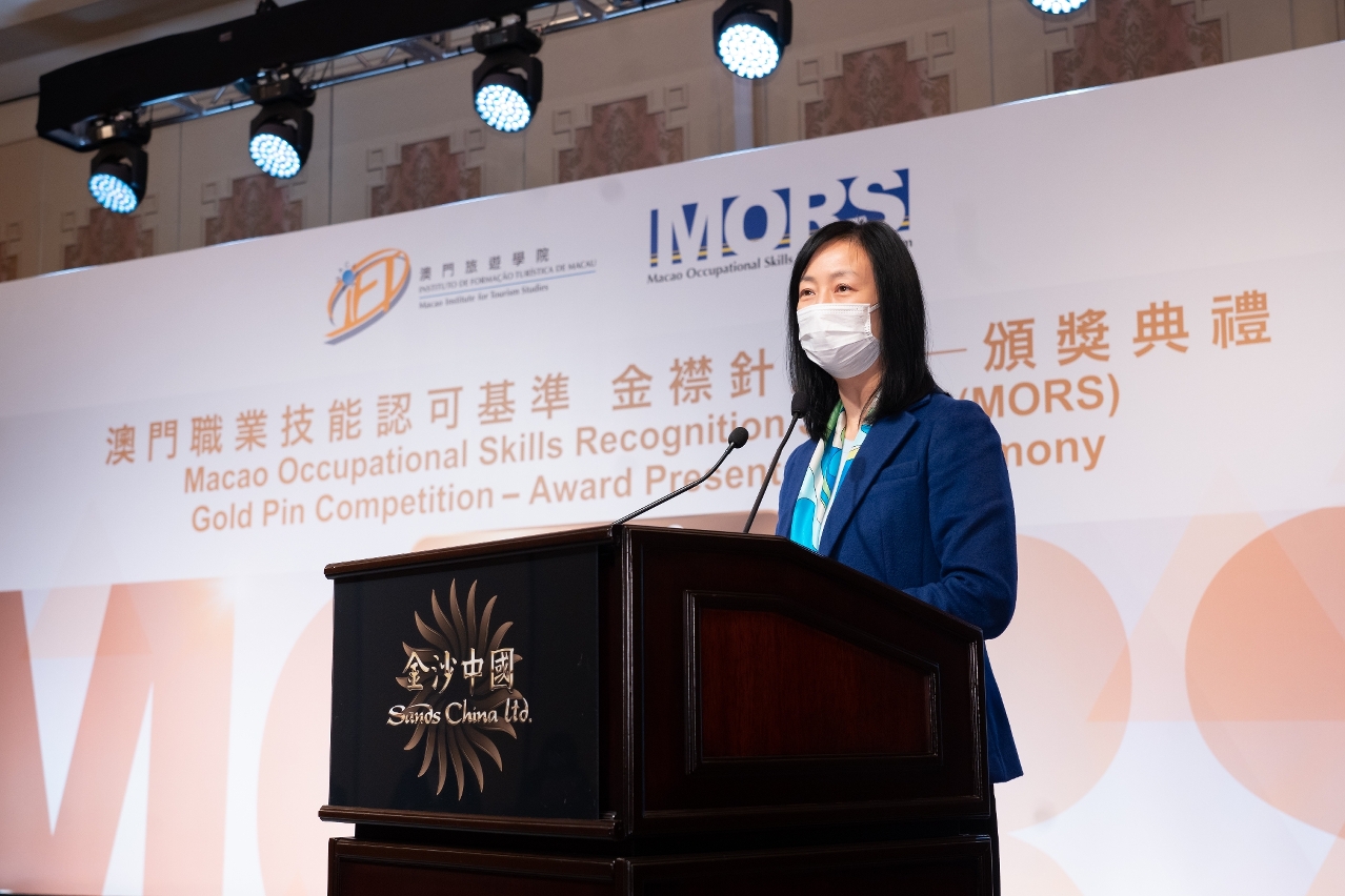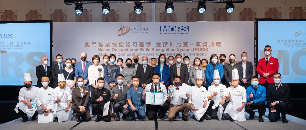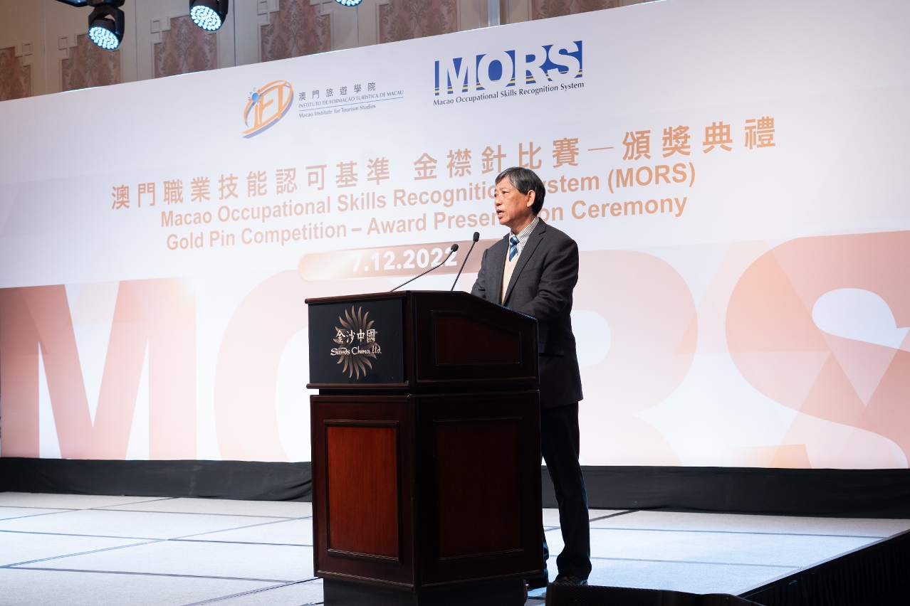 澳门旅游学院于2022年12月7日举行“澳门职业技能认可基准(MORS)”2022金襟针大赛颁奖典礼,由澳门劳工事务局黄志雄局长、职业培训厅张玮厅长、澳门旅游局组织计划及发展厅马裕玲厅长、澳门酒店协会会长王淑欣会长、澳门酒店旅业职工会李宝来会长、金沙中国有限公司度假村营运高级副总裁麦萃贤先生担任颁奖嘉宾。
