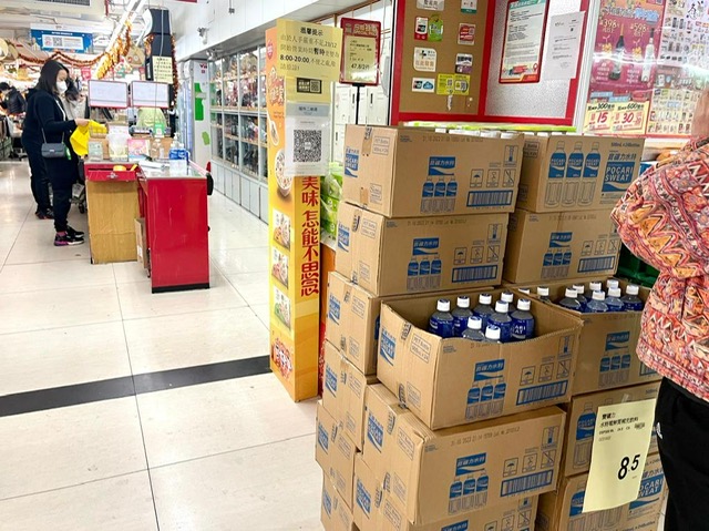 经向多家超市瞭解,负责人表示目前货源充足,店方因应需求较大的货品,如电解质饮料、喉糖等增加入货数量,已尽快将货品上架。