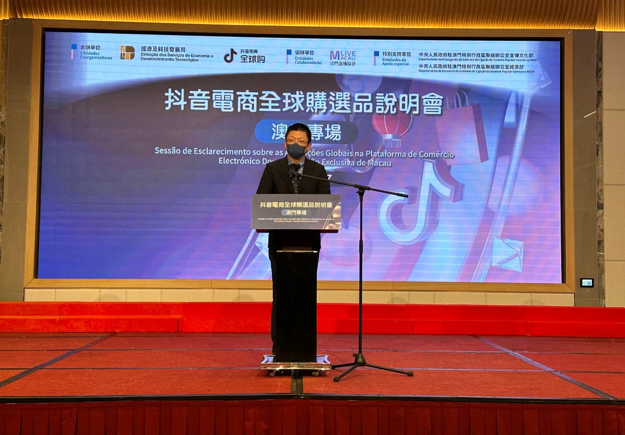 由中央人民政府驻澳门特别行政区联络办公室支持、澳门特别行政区政府经济及科技发展局与抖音集团合办、澳门直播协会协办的“抖音电商全球购选品说明会澳门专场”于今(27)日假渔人码头会议展览中心举行。会上,抖音电商全球购代表向本澳企业介绍了抖音全球购的最新招商政策,并即席与本澳企业交流洽谈。