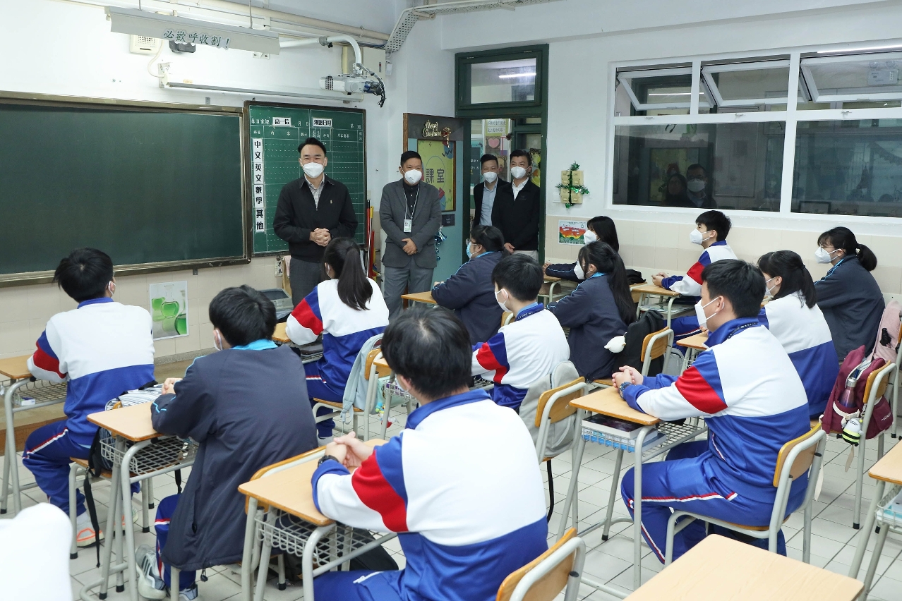随着防疫过渡期结束,非高等教育学校今日(1月9日)结束假期后首日复课,教青局局长龚志明等领导及主管人员到多所学校了解复课措施的执行情况,学校的整体运作顺利。龚志明局长向校长及家长了解学生复课情况,并到课堂与师生交流,勉励学生努力学习,亦关心学生康复后的身体情况。学校校长表示,复课首日学生整体出席情况正常,学校均按教青局指引准备好各项复课安排;现场亦有家长表示,子女于假期期间受新冠病毒感染,目前已经康复,并认同接种疫苗有助减轻症状,学生亦期待回校。经统计,复课首日全澳没有班级受影响停课。
