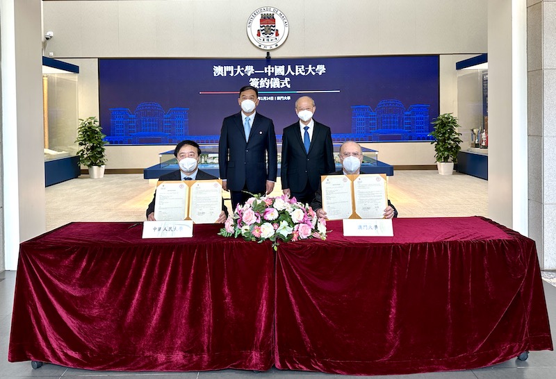 澳门大学与中国人民大学今(14)日签署《教育和科学合作备忘录》,同场亦举行了“国际文化交流学术联盟”及“世界人文社会科学高校联盟” 授牌仪式。两校冀在未来进一步深化交流与合作,充分整合双方资源与优势,携手推动京澳两地高等教育发展,为国际文化交流以及世界人文社科发展贡献力量。