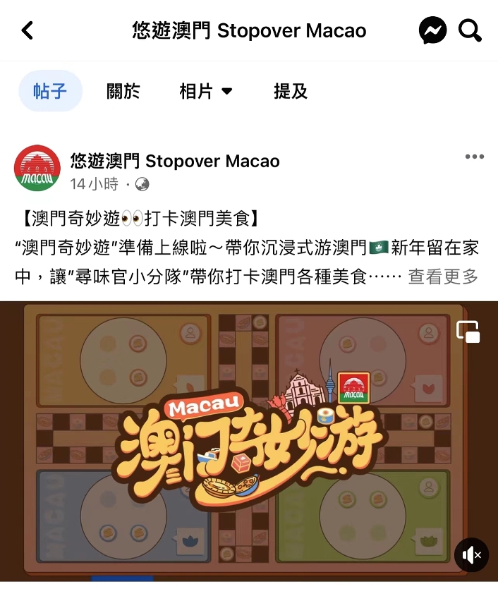 旅游局与内地广受欢迎的芒果TV合作微综艺节目《澳门奇妙游》,由4位内地着名艺人组成的“寻味官小分队” 体验澳门美食为主线,以游戏方式带观众打开澳门之旅。节目于今天(26日) 年初五起,每逢周四及周五晚上6时在芒果TV播出。