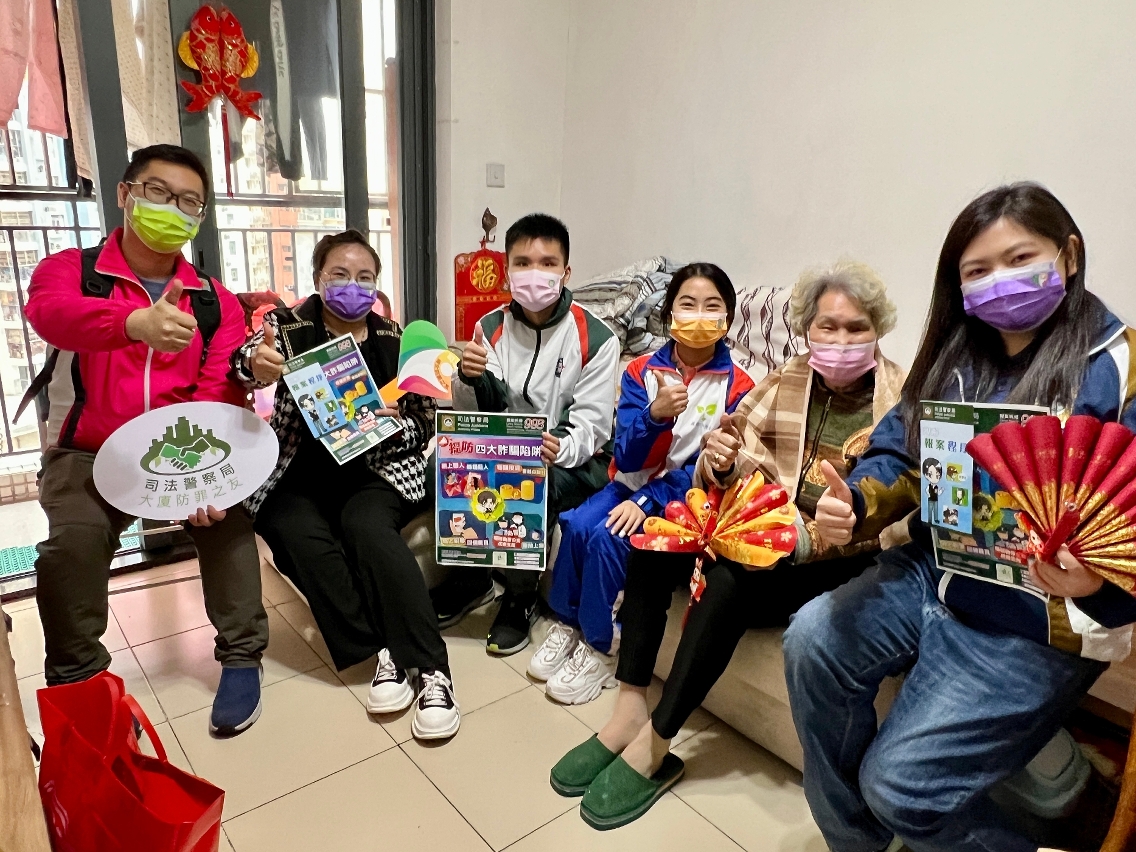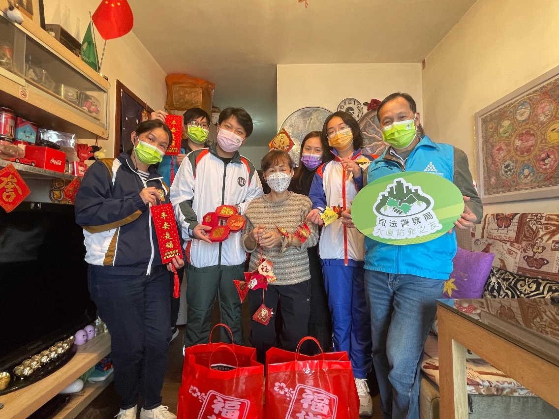 为弘扬敬老爱老和奉献精神,以及向社会大众传递关爱弱势的正面讯息,司法警察局联同“司警局大厦防罪之友”和“司警局妇女防罪之友”会员、社区安全青年领袖及灭罪小先锋学员前往氹仔区探访独居长者,送上新春福包和节日祝福,并温馨提醒长者们提高防罪警惕,勿让不法份子有机可乘。