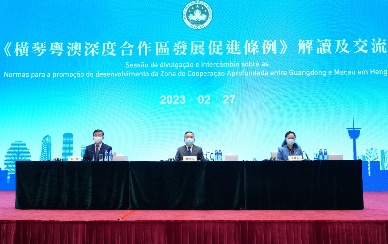 由特区政府政策宣传协调小组主办、政策研究和区域发展局承办的《横琴粤澳深度合作区发展促进条例》解读及交流会2月27日上午在“中国与葡语国家商贸合作服务平台综合体”会议厅举行。逾百本澳社团和机构的代表,以及澳门特区政府局级领导及厅处级主管官员等约二百五十人出席。政策研究和区域发展局局长张作文主持了此次会议。