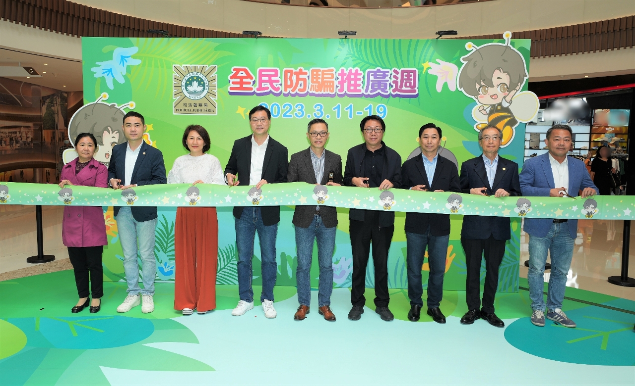 “全民防骗推广周”活动于3月11日至19日期间在氹仔星皓广场举行。启动仪式于活动首日中午进行,邀得澳门街坊会联合总会副理事长梁鸿细、澳门工会联合总会副会长梁伟峰、澳门妇女联合总会理事长袁小菱、澳门归侨总会副会长赵文炎、民众建澳联盟理事长李良汪、澳门物业管理业商会会长谢思训、澳门不动产管理专业技术人员协会理事长薛婉娜及澳门物业管理专业人员协会会长周嘉进等嘉宾,联同司警局局长薛仲明主礼。