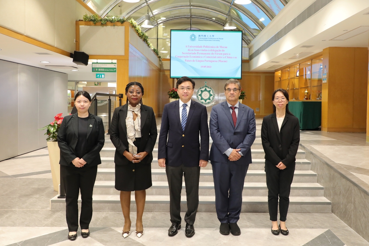 中国与葡语国家经贸合作论坛 (澳门) 常设秘书处赤道几内亚首任派驻代表蒙天娜 (Cristina Mangue Abeso) 于5月19日到访澳门理工大学,受到校长严肇基等欢迎接待。双方就澳门与赤道几内亚的高校合作和学术交流等事宜进行了友好会谈。