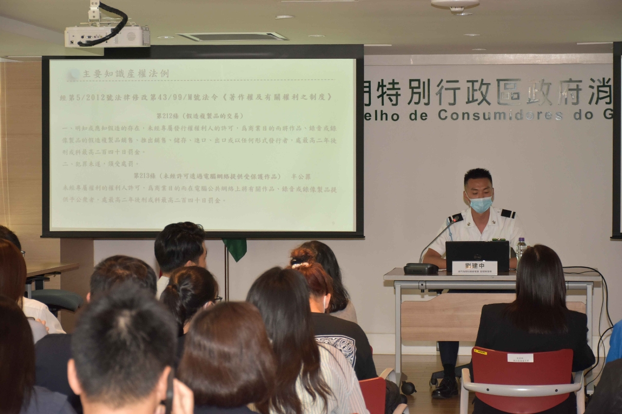 澳门海关知识产权厅代表详细介绍知识产权的相关法律规定,并以案例说明海关打击商标侵权行动的成效,提醒商户切勿抵触相关法例,除损害到消费者权益及安全外,或会被科处徒刑,呼吁商户提高意识,严格守法。