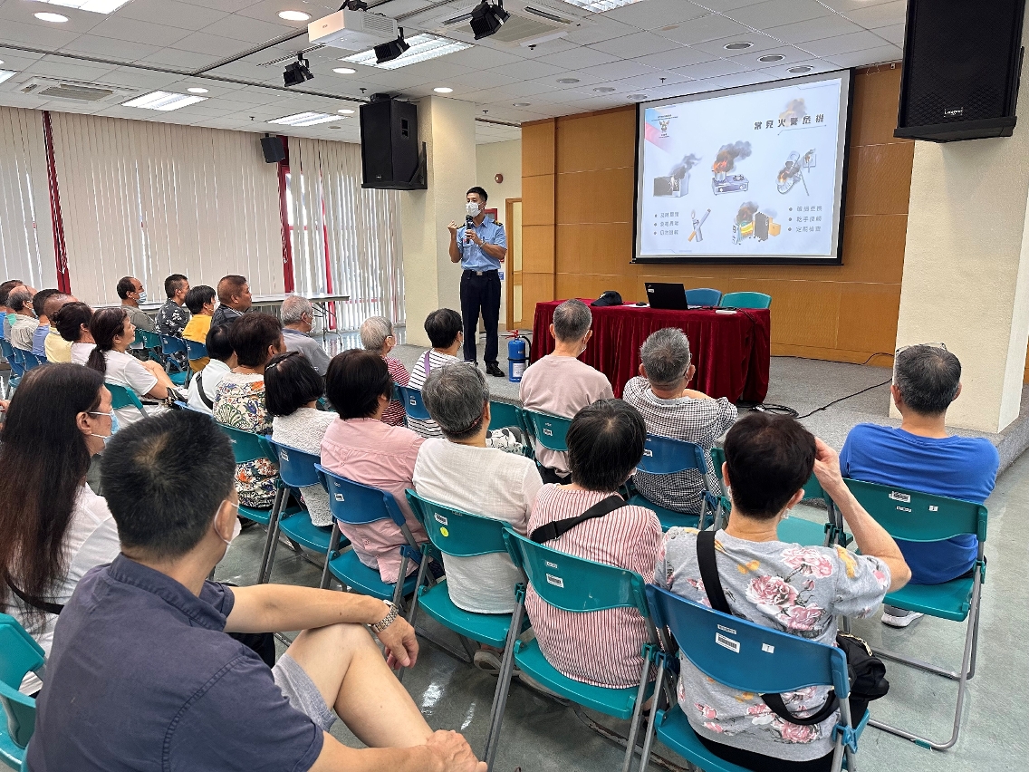 讲座于六月二十一日在营地活动中心举行。消防局代表于讲座上介绍多项防火应急安全知识,如离开时应关闭所有用电设备、保持周边疏散通道畅通、切勿储放易燃物等,提醒人员应正确使用电器,定期保养维护用电设备等。