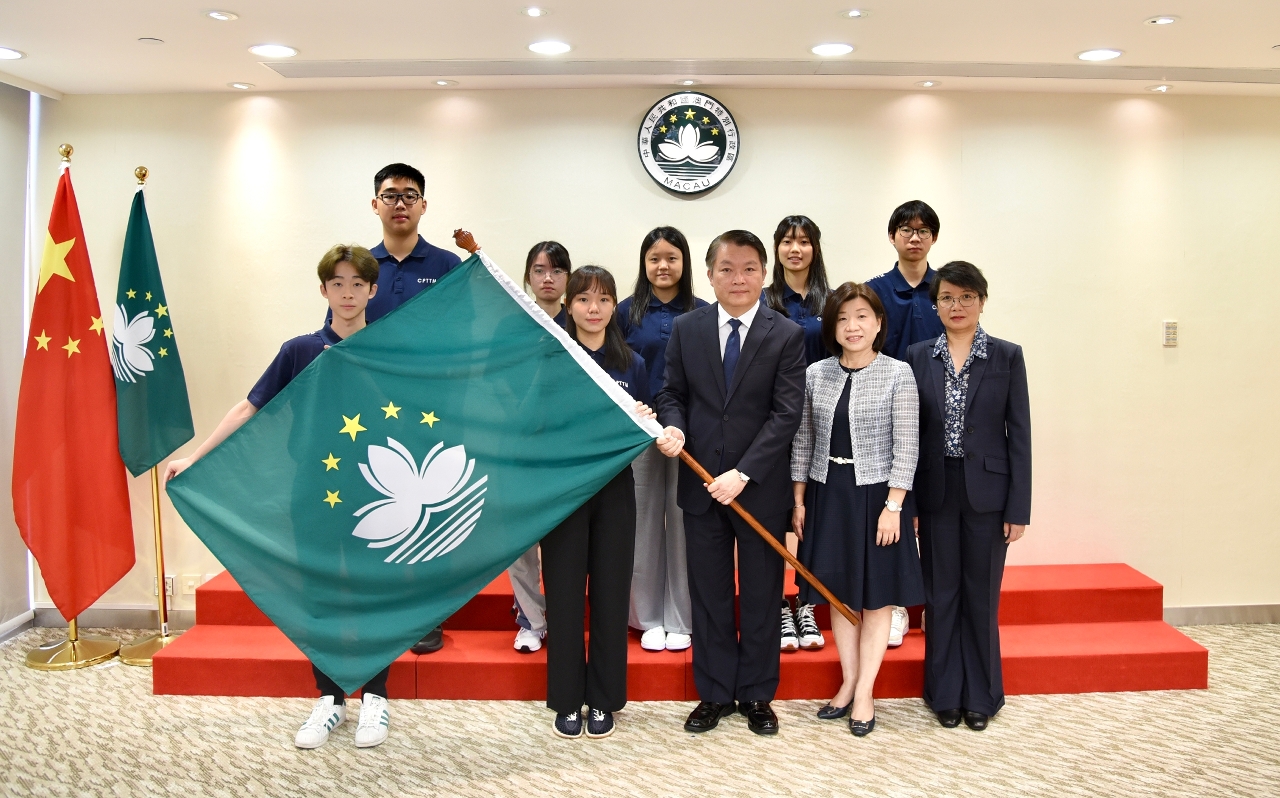 李司长在授旗仪式上为同学打气。他强调,特区政府对人才培训不断投入资源,积极透过各类培训及竞赛活动,培养新一代在多元技能的发展。并希望同学珍惜参赛机会,努力争取佳绩,并与其他国家地区选手交流学习,扩阔视野,自我提升,为国家及特区的未来发展作出贡献。