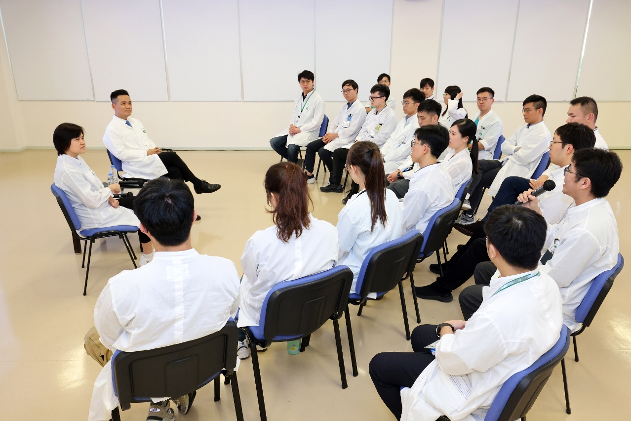 此外,日前卫生局局长罗奕龙和澳门医学专科学院协调员林果与多名正在进行培训的青年医师进行交流,罗奕龙局长感谢各位医疗人员一直以来的辛勤付出。他表示,青年医师是医疗卫生事业发展重要的人力支撑,藉着“中国医师节”,除了对每位医师表逹敬意和感谢外,听取青年医师的意见对医疗卫生事业发展亦非常重要,期望藉着交流会了解他们的看法和建议,以及在医疗工作上遇到的困难和挑战等,更好规划医疗卫生事业的发展方向。他寄望广大青年医师秉承优良传统,勇攀医学高峰,不断提升医术水准和服务品质,为更好维护和保障居民身体健康作出新贡献,展现出新时代青年应有的模样。