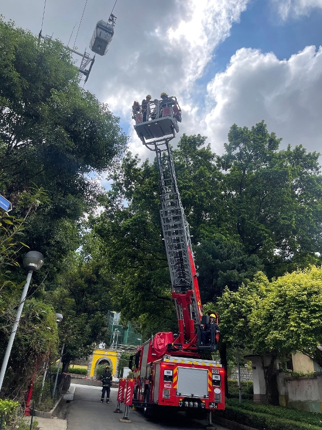 为加强松山缆车发生事故时的紧急应变协作能力,于9月25日,消防局联同市政署进行松山缆车事故拯救演习。