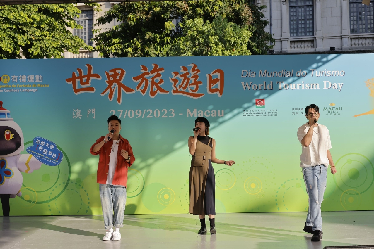 在托盘比赛起点大三巴耶稣会广场和终点议事亭前地均设“澳门有礼运动 – 旅游大使,你我都是”主题曲表演,由本地歌手龙世杰、古淖文及林静翚现场献唱,藉此鼓励各前线行业及本地居民做好旅游大使,尽地主之谊,亲切对待每位旅客,同时向聚集旅游景区的旅客传达 “澳门有礼运动” 的讯息, 展示有礼城市的形象。