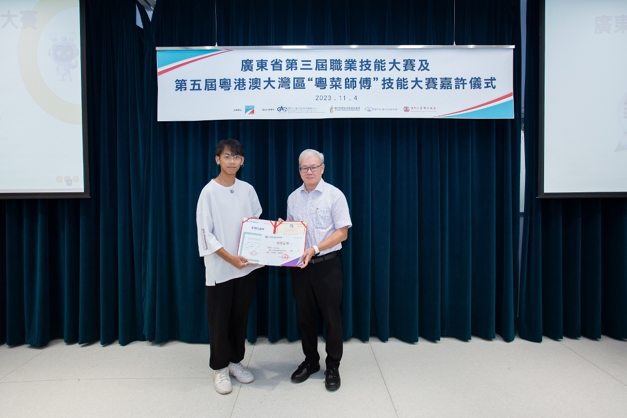 为加强粤澳两地业界的交流和合作,推动行业发展及技能传承,劳工局于本年3月邀请本澳业界团体协助组织业界代表,派出5名选手参加于梅州市举行的粤港澳大湾区〝粤菜师傅〞技能大赛粤菜名厨组比赛,其中本澳代表余天俊获得中式烹调师三等奖及预制菜优胜奖,吴冠毅及赵加卫则分别获中式烹调师及中式面点师的预制菜优胜奖。5名参赛选手均达竞赛规定,获发内地认可技师级别的职业技能等级证书及劳工局发出的职业技能证明。