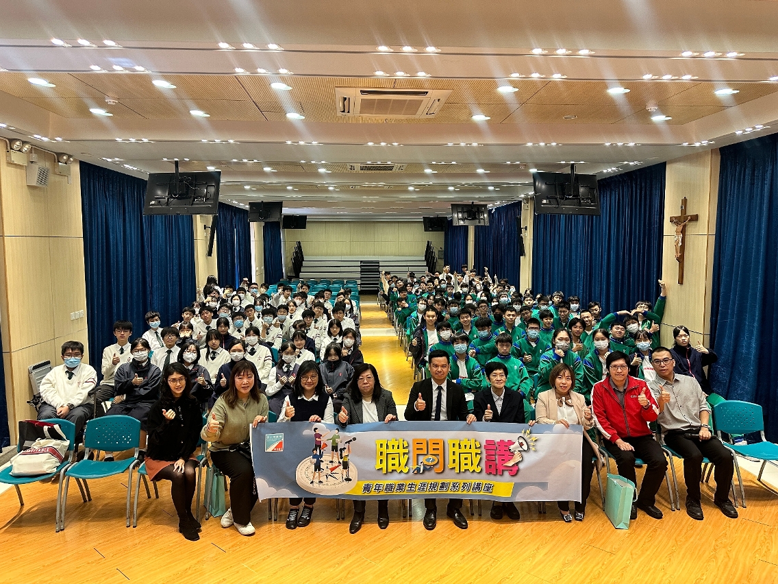劳工局邀请DFS COTAI LIMITADA(下称“DFS”)及中国建筑工程(澳门)有限公司(下称“中建”)派出资深业务代表及青年工程师分别于12月7日及11日到澳门“圣若瑟教区中学第五校”及“劳校中学”主讲“职问职讲”,2场讲座合共有256名高中学生参与。