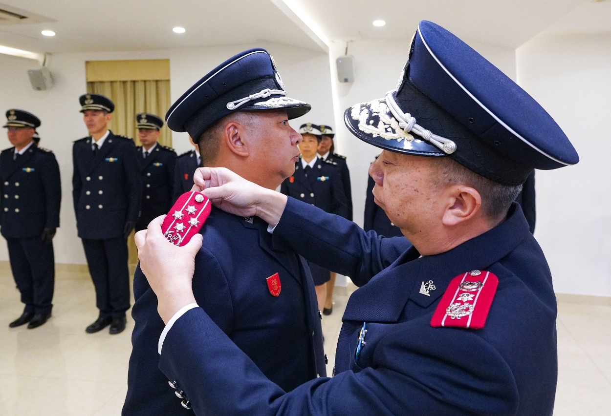 黄文忠关长在致辞时对李煜辉副关长过往的工作表现予以肯定,表示其一直以来在工作上全心投入、尽职尽责、勇于承担,以创新的精神、专业的工作表现,赢得同僚的支持和信任。自2021年起,李煜辉先后担任助理关长及代副关长的职位,在促进粤港澳大湾区贸易安全和通关便利化、推动琴澳口岸车辆创新通关模式的落实、打击关务欺诈和不法贩运活动、提升民防应急水平及深化与邻近地区的执法合作等方面,均作出了卓越的贡献,全力维护澳门的社会及经济秩序。