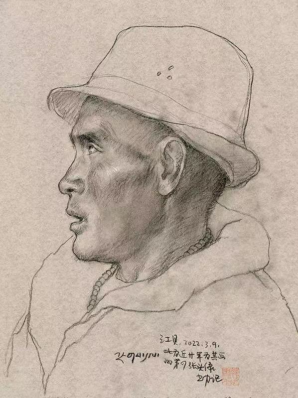 此次展览是对韩书力的肖像写生创作进行系统性地梳理与展示,值得一提的是,展览中的许多作品是近年才从老屋旧作中整理出来,与作者已经暌违了近半个世纪。从1978年创作的《制陶工匠多吉》,到2003年创作的《工布少年米玛次仁》,直至近年新作如《大学生次仁巴登》、《江贝》等,韩书力的肖像写生作品逐渐向着更加概括、简约、精炼的风格发展,展示了艺术家日益成熟的观察力及对人物形体的提炼能力。