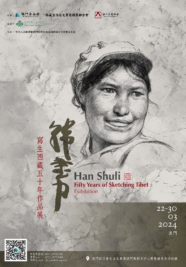 由澳门基金会、西藏文化艺术界联合会及澳门美术协会主办,澳门西藏文化促进会协办,中央人民政府驻澳门特别行政区联络办公室宣传文化部支持的“韩书力写生西藏五十年”作品展将于2024年3月22日(星期五)18:30,在澳门教科文中心展览厅及多功能厅揭幕,展出艺术家韩书力的写生作品约80幅。