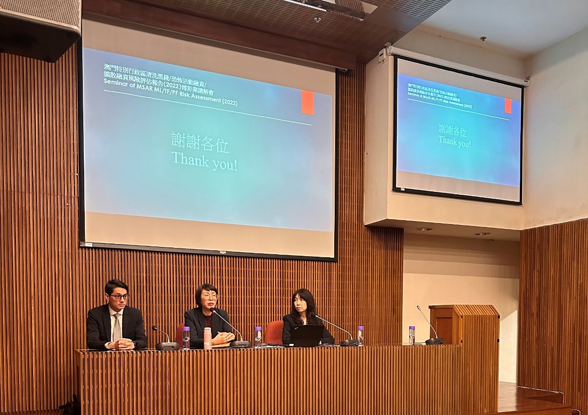 为使业界进一步了解是次风险评估的分析内容及结果,警察总局金融情报办公室作为有关项目之协调部门,与监管部门合作为不同业界举办《澳门特别行政区清洗黑钱/恐怖活动融资/扩散融资风险评估报告》专题讲解会,藉此进行互动交流及协助业界更好地配合澳门特区政府于打击清洗黑钱、资助恐怖主义及资助大规模毁灭性武器扩散方面的政策,积极做好预防措施,共同维护金融安全。