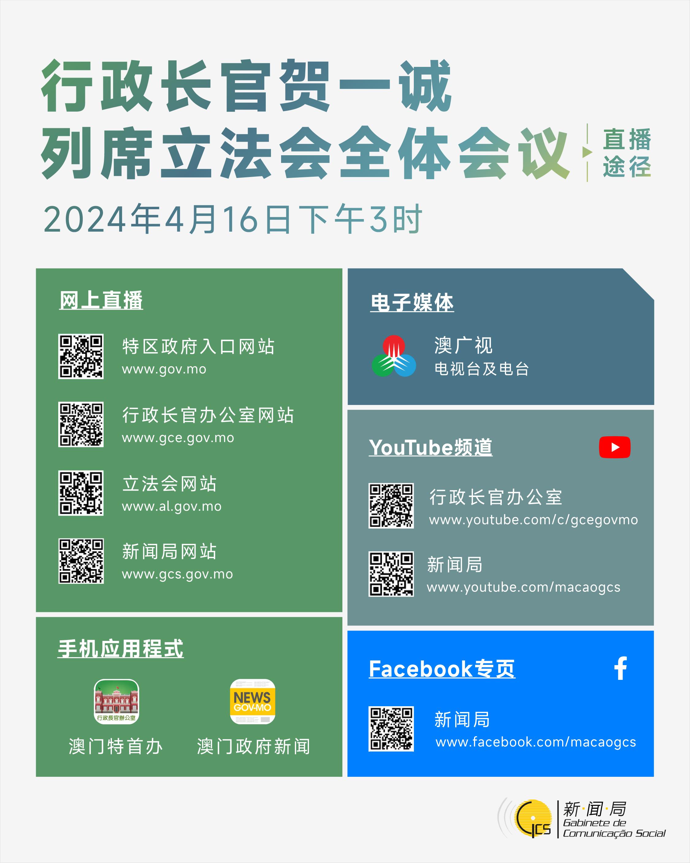 - 新闻局Facebook专页( www.facebook.com/macaogcs )
