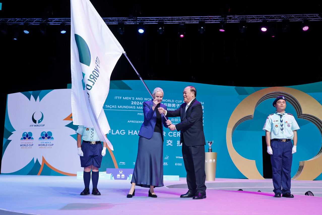 男子及女子世界杯冠军顺利诞生,并进行颁奖仪式。颁奖仪式前,由澳门特别行政区行政长官贺一诚将本次获授权举行的国际乒联男子及女子世界杯的赛旗交予国际乒联主席、国际奥委会委员佩特拉‧索林。
