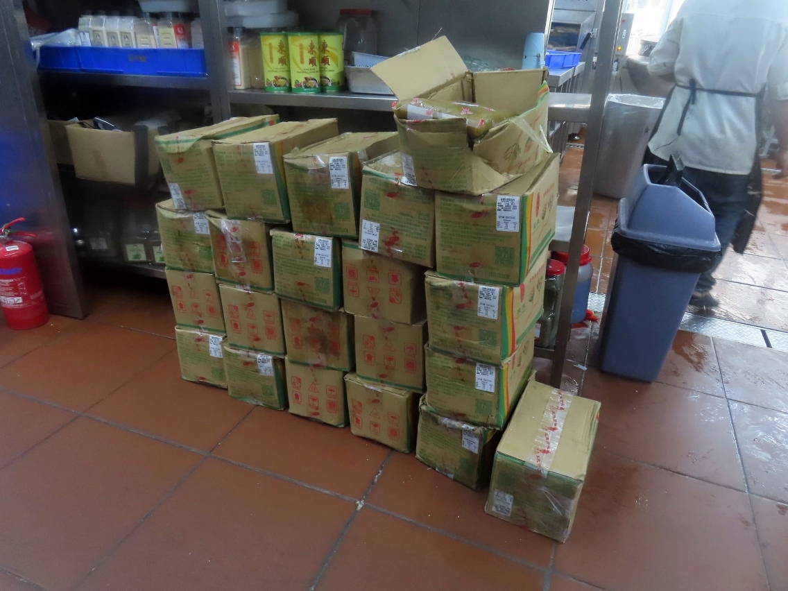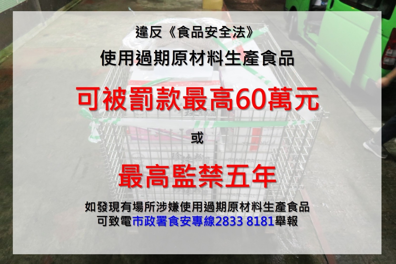 市政署日前食安排查中查获银河食品厂72包重约340公斤的白莲蓉、荔芋蓉等过期包点馅料。据调查,涉事过期馅料为银河食品厂及温记粉面厂共用,并生产制成包点供应两间下游食店。市政署即时采取预防控制措施,封存涉事过期食品原材料,勒令有关食品厂停止生产及供应涉事问题产品,市政署将根据《食品安全法》作出检控,如属行政违法行为,将可被科处澳门元五万元至六十万元的罚款;若情节触犯「生产经营有害食品罪」,可被判处最高监禁五年或最高六百日罚金。