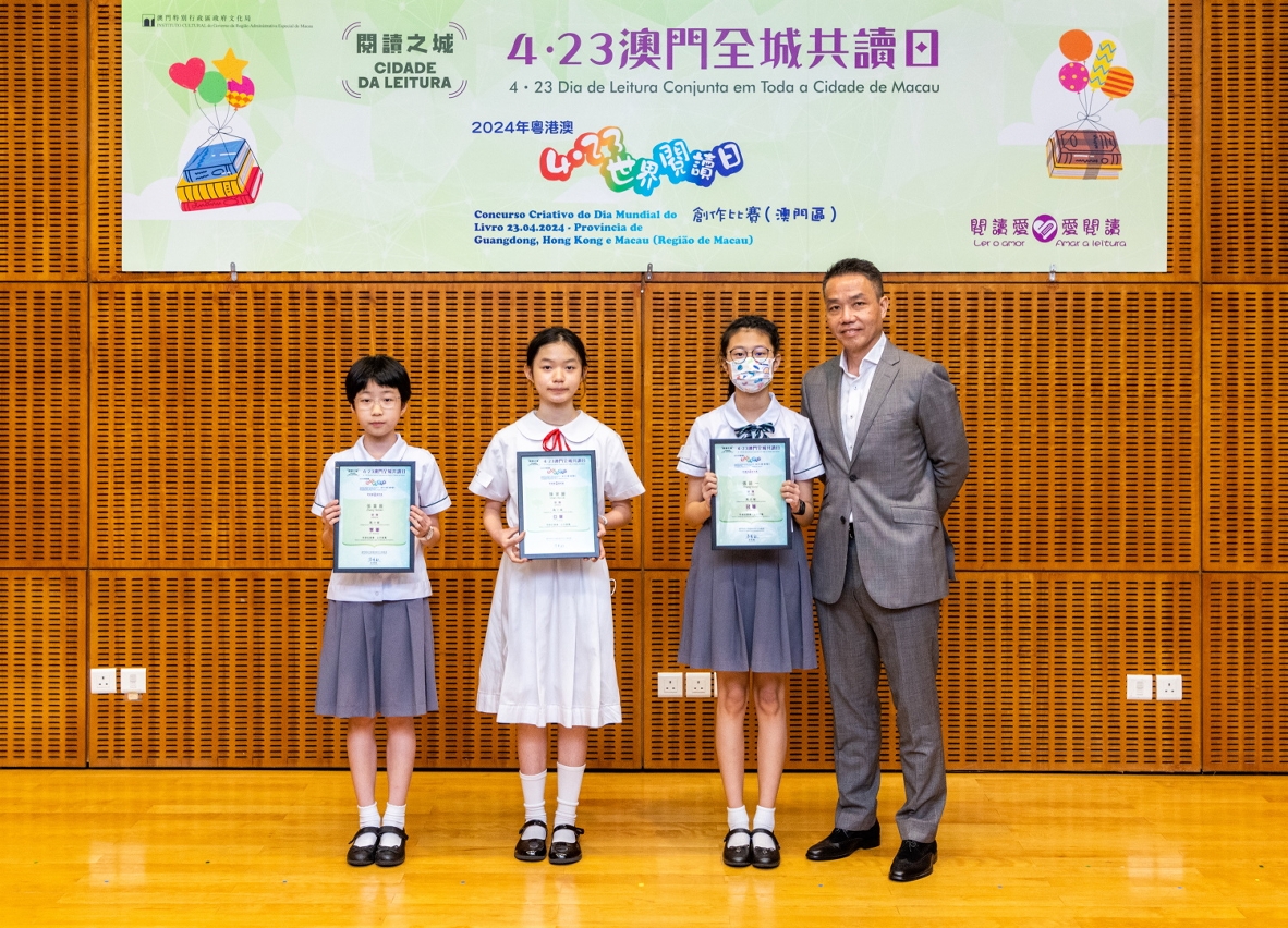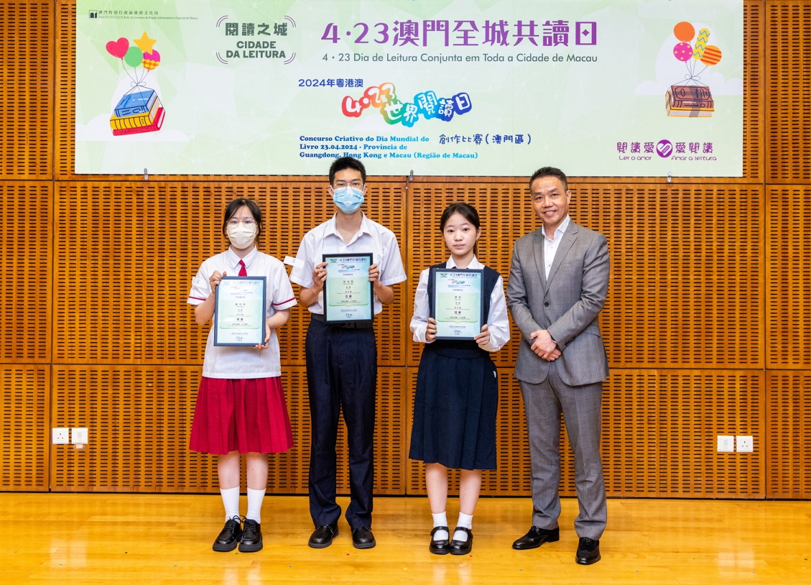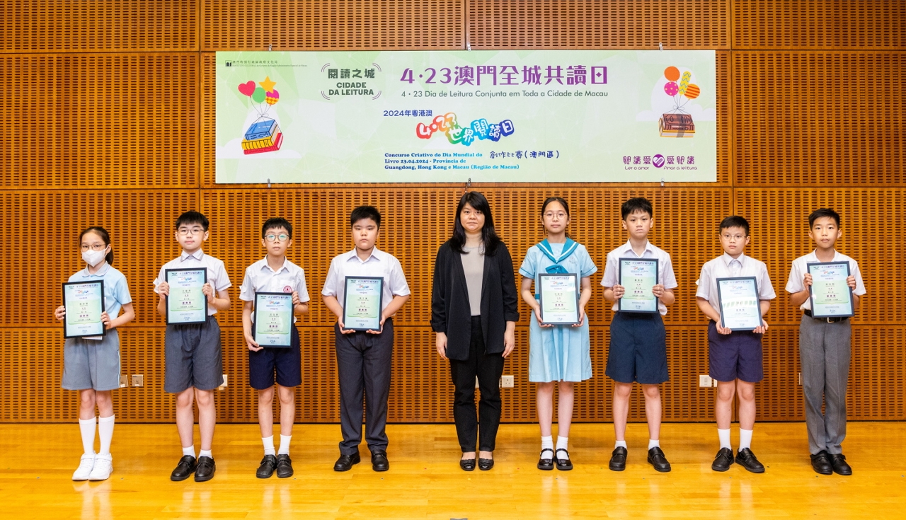 文化局联同广州、深圳及香港等城市之公共图书馆合作举办粤港澳“4‧23世界阅读日创作比赛”,澳门区颁奖礼于4月27日(星期六)在澳门艺术博物馆演讲厅举行,向得奬者颁发奬状及向各得奖者学校致送纪念座,并于现场展出得奖作品,气氛热烈。