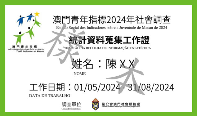 2024年的社会调查透过书面咨询方式判给予圣公会澳门社会服务处,调查将于本年5月至8月期间进行,并采用电子化问卷方式为主,纸本为副,以街头访问、邀请学校及公私营机构与民间社团参与自填问卷等形式进行,调查对象为13至35岁的澳门青年。