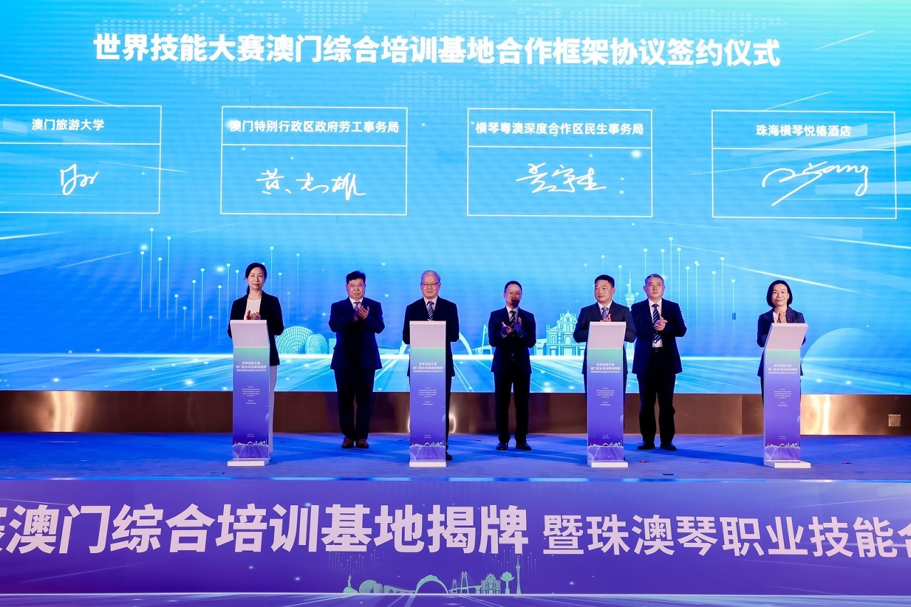 活动上,澳门劳工事务局、澳门旅游大学及横琴合作区民生事务局、珠海横琴悦椿酒店四家共建单位签署了《关于建设“世界技能大赛澳门综合培训基地”合作框架协议》,澳门综合培训基地设在珠海横琴悦椿酒店,旨在推动粤澳两地技能人才交流,助力粤港澳大湾区技能人才高地建设。