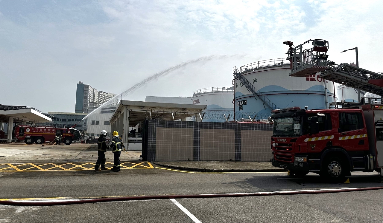 「2024年油库火警演习」于下午二时半开始,模拟存储飞机燃油的一个大型油罐因静电引发顶部火灾的情景。南光石油化工有限公司(机场航油供应商)在事件发生后立即根据机场紧急应变计划发出警报,并将火灾附近范围的车辆移离现场。机场消防分站派出消防车辆前往现场进行救火。考虑到事发地点的危险性,现场指挥官疏散了附近的工作人员,并联系消防局总部请求增援。事件没有造成任何人员伤亡。整个演习历时约30分钟,顺利完成。
