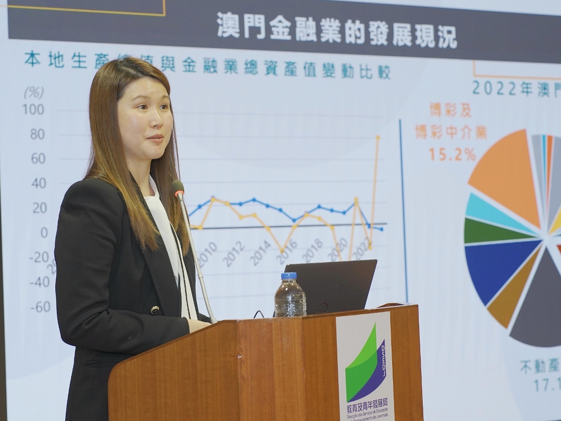 为让本澳中学教职员及时掌握金融业的发展情况及就业前景,以更好地辅助中学生规划升学和职业发展路向,由澳门金融管理局主办、教育及青年发展局协办的“升学路向 — 探索在金融业的发展方向”专题讲座于日前顺利举行,吸引了本澳26所学校47名教职员参加。