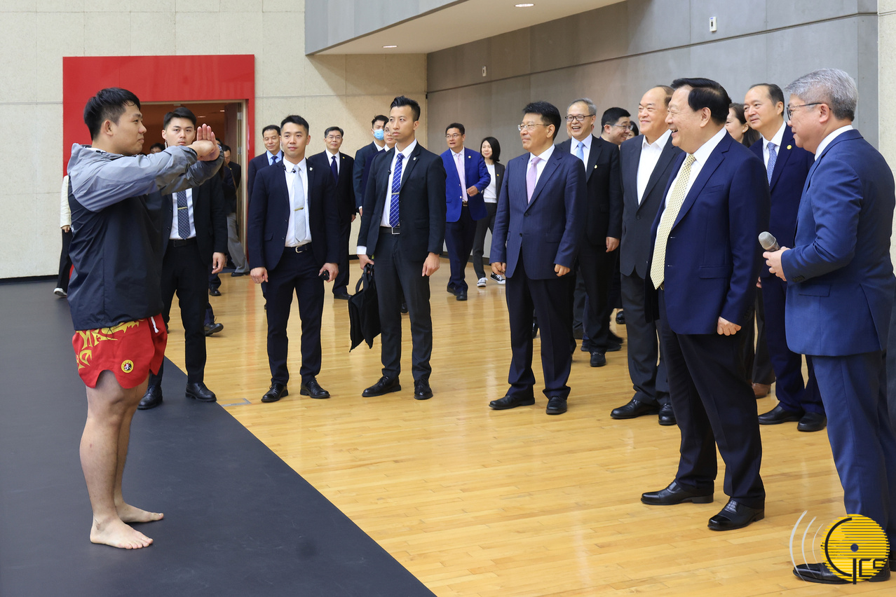 中央港澳工作办公室主任、国务院港澳事务办公室主任夏宝龙今(19)日在行政长官贺一诚、中央政府驻澳门特区联络办公室主任郑新聪、社会文化司司长欧阳瑜陪同下参观澳门东亚运动会体育馆、运动员培训及集训中心,了解本澳体育设施,以及本澳体育事业的发展。