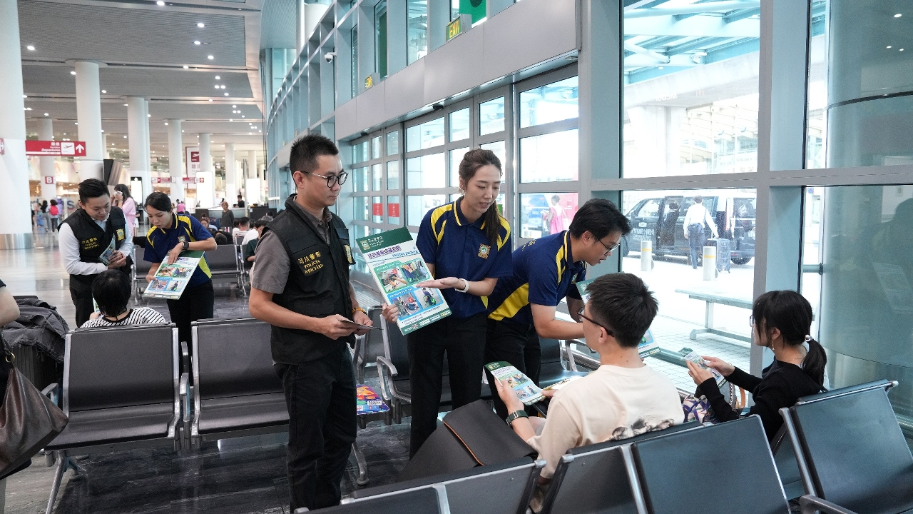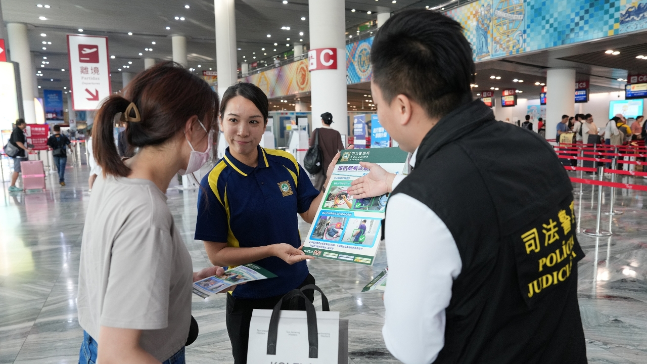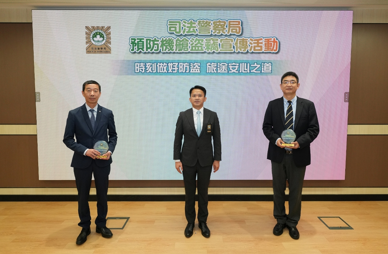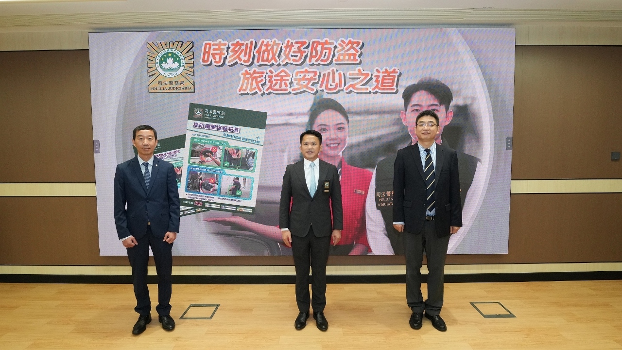为提高市民和旅客的防罪警惕,及早做好防盗措施,减低机舱盗窃案发生的机会,司法警察局联同澳门国际机场专营股份有限公司、澳门航空股份公司于9月17日展开“预防机舱盗窃”宣传活动,举办面向航空业界前线工作人员的“预防机舱盗窃”培训讲座,随后举行由司警局及澳门航空股份公司合作摄制的“时刻做好防盗,旅途安心之道”防罪影片首映仪式。仪式结束后,司警局随即派员前往澳门国际机场,开展预防机舱盗窃系列宣传活动,藉此提升广大市民和旅客的防罪意识,加强警民合作,共同维护机场和航班安全。