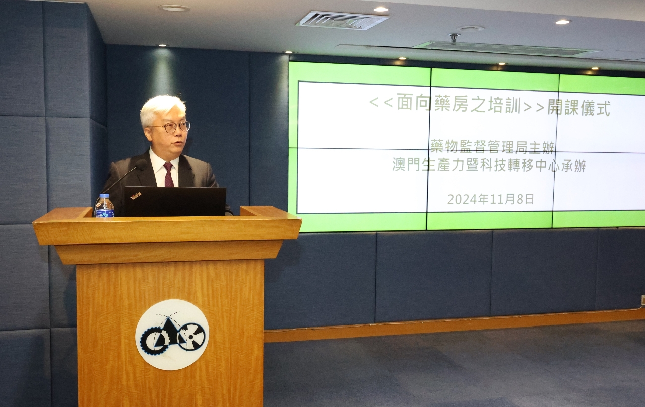 由药物监督管理局主办、澳门生产力暨科技转移中心承办的《面向药房的培训课程》于本年11月8日及14日举办,并于8日举行了简单而隆重的开班仪式。