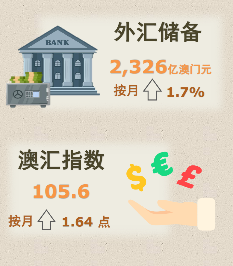 澳门金融管理局今(13)日公布,2024年11月底澳门特别行政区的外汇储备资产总额,初步统计为2,326亿澳门元(290.2亿美元),较2024年10月经修订总额2,286亿澳门元(285.6亿美元),上升了1.7%。2024年11月底的外汇资产总额,约相当于2024年10月底澳门流通货币的11倍或广义货币供应(M2)中属于澳门元部分的90.0%。