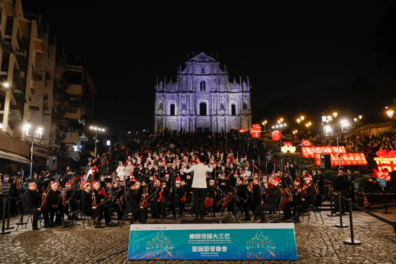 由文化局主办、澳门乐团有限公司承办的“乐韵悠扬大三巴”音乐会,于12月25日圣诞节傍晚在世遗景点大三巴牌坊演出两场,吸引大批市民与旅客欢聚聆听,现场气氛温馨,活动同时透过多个平台直播,让更多观众观赏演出,感受佳节气氛。