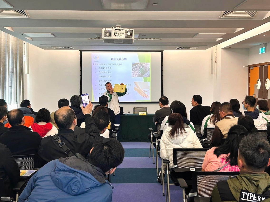 防治鼠患是一项长期工作,保持环境卫生是保障食品安全、防鼠灭鼠的重要防线,餐饮及食品零售业界须承担社会责任。是次讲解会邀请了澳门餐饮业联合商会、澳门美食同业联合商会、澳门中小型餐饮业商会、澳门餐饮行业协会、澳门百货办馆业商会、澳门超市及民生食品协会,以及本澳连锁超市代表等参与。