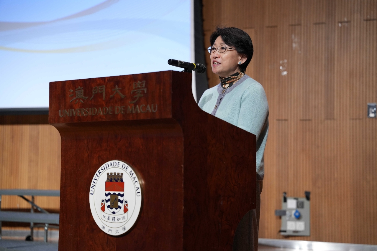 徐建在致辞中指出,澳大多年前已积极向全校师生开展防诈骗宣教工作,以提升师生的防骗意识。自去年“校园防骗疫苗计划”启动以来,澳大已成功落实多项措施,包括在住宿式书院课程中增设防骗内容,邀请学生填写由司法警察局设计的防骗测验卷以筛查高风险对象并进行针对性宣教,向学生家长发放防骗宣传资讯并举行讲座,向每位住宿学生进行一对一防骗宣讲等。委任防骗大使是“校园防骗疫苗计划”的一项重要措施,旨在充分发挥朋辈间的正面影响力,引导同学正视防骗工作。她衷心感谢司法警察局和教育及青年发展局一直以来对澳大的关心和支持,澳大将继续积极配合相关防骗计划和工作。