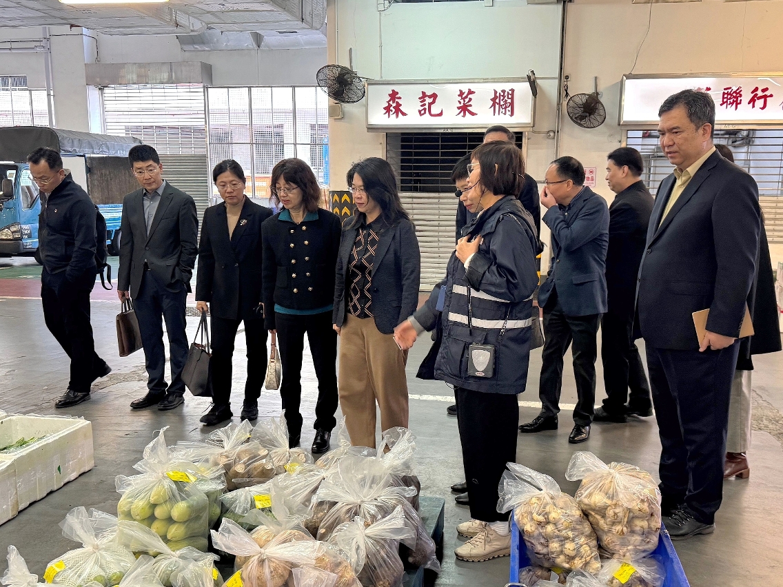 春节临近,国家商务部对外贸易司李娜副司长今(16日) 率考察团来澳开展农副产品供澳调研工作,与市政署市政管理委员会周伟迎主席及吴秀虹委员等进行会谈,并实地考察澳门新批发市场及沙梨头街市,了解内地农副产品供应情况,保障节日期间对澳门农副产品稳定供应和质量安全。考察团成员包括国家商务部、海关总署和广东省商务厅的代表。