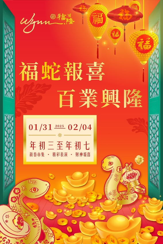 永利澳门将于1 月31 日至2 月 4 日在福隆新街步行区设有新春市集,带来手工文创摊位以及特色饮品,惠顾步行区内中小企并消费满指定金额,即可参与游戏活动及领取新春福袋,现场亦穿插一系列的表演活动,包括新春气球乐、街头音乐和快闪表演等,更有“财神”到场巡礼,带来财运亨通的新年好彩头。新春期间,福隆新街将装上喜气盈盈的新春布置和装饰,打造浓厚的春节节庆气氛。
