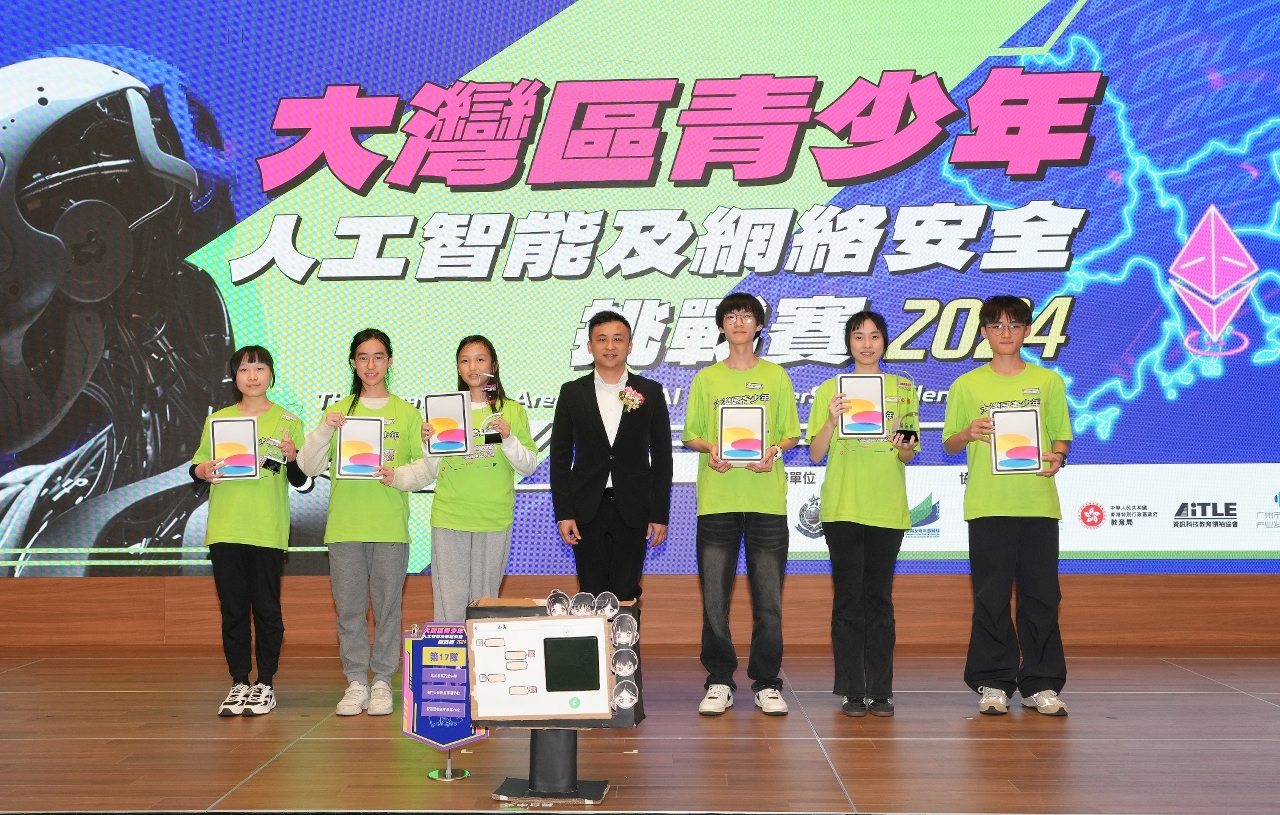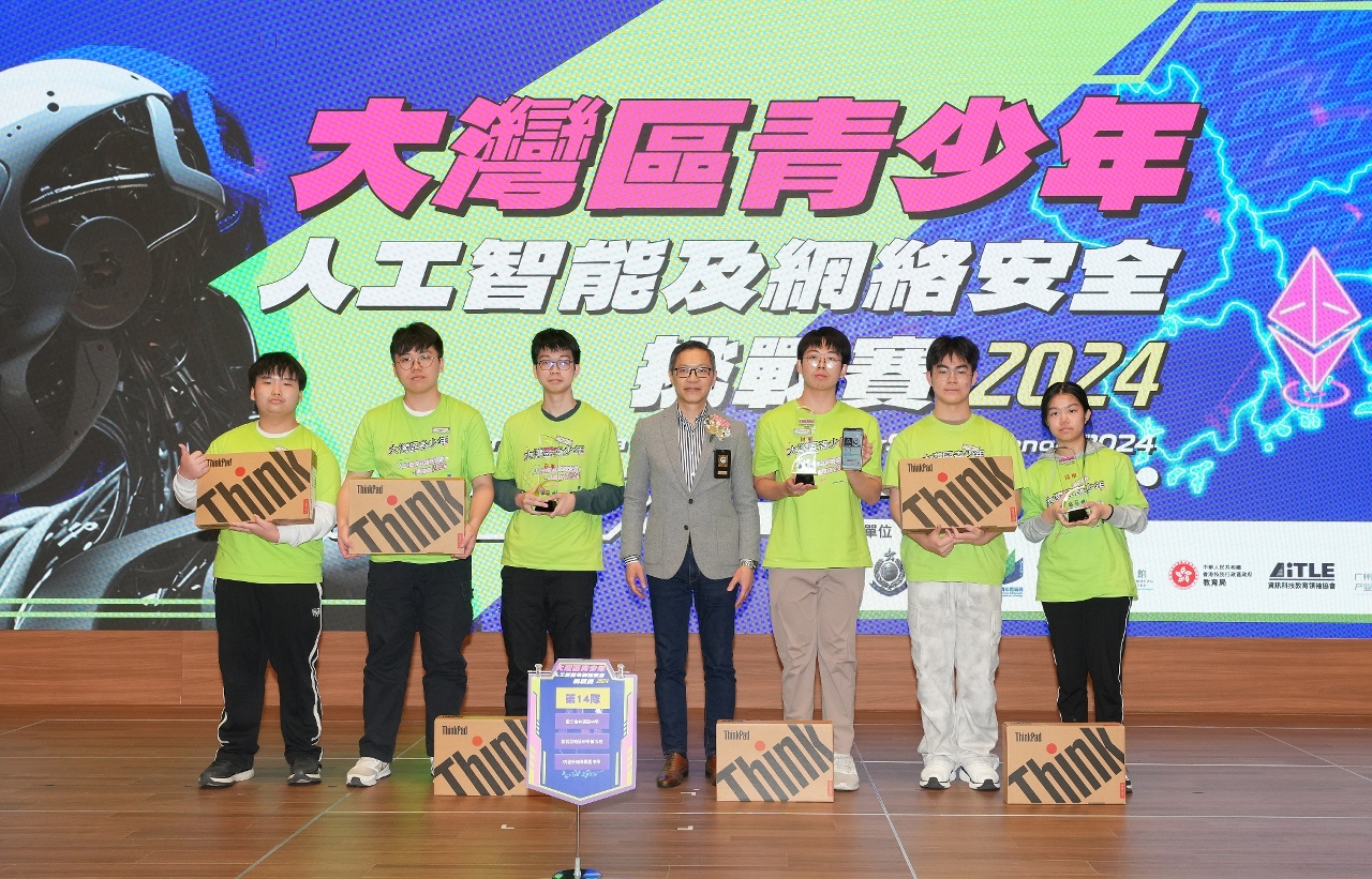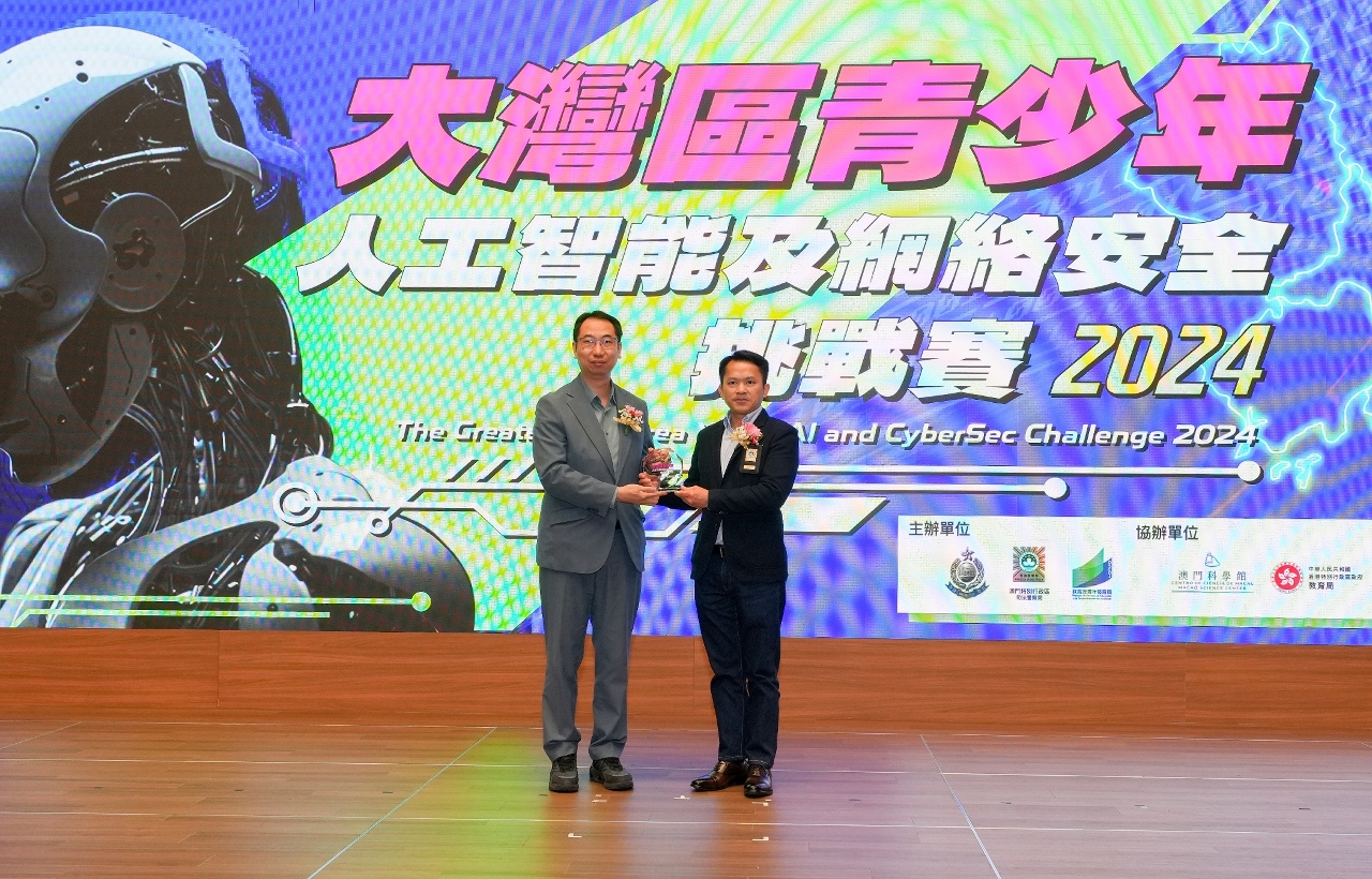 由澳门特区司法警察局、教育及青年发展局,以及香港特区警务处联合主办,澳门科学馆、香港特区教育局、中国科学院香港创新研究院人工智能与机器人创新中心、资讯科技教育领袖协会,以及广州市人工智能产业发展促进会共同协办的“大湾区青少年人工智能及网络安全挑战赛2024”,已于2025年2月9日在澳门举行决赛。来自粤港澳大湾区合共117名青少年学生在本澳参加三日两夜的“人工智能训练营”及决赛环节,比赛最终由澳门圣若瑟教区中学第五校、香港圣公会林裘谋中学和香港明爱粉岭陈震夏中学同学组成的小队勇夺全场总冠军。