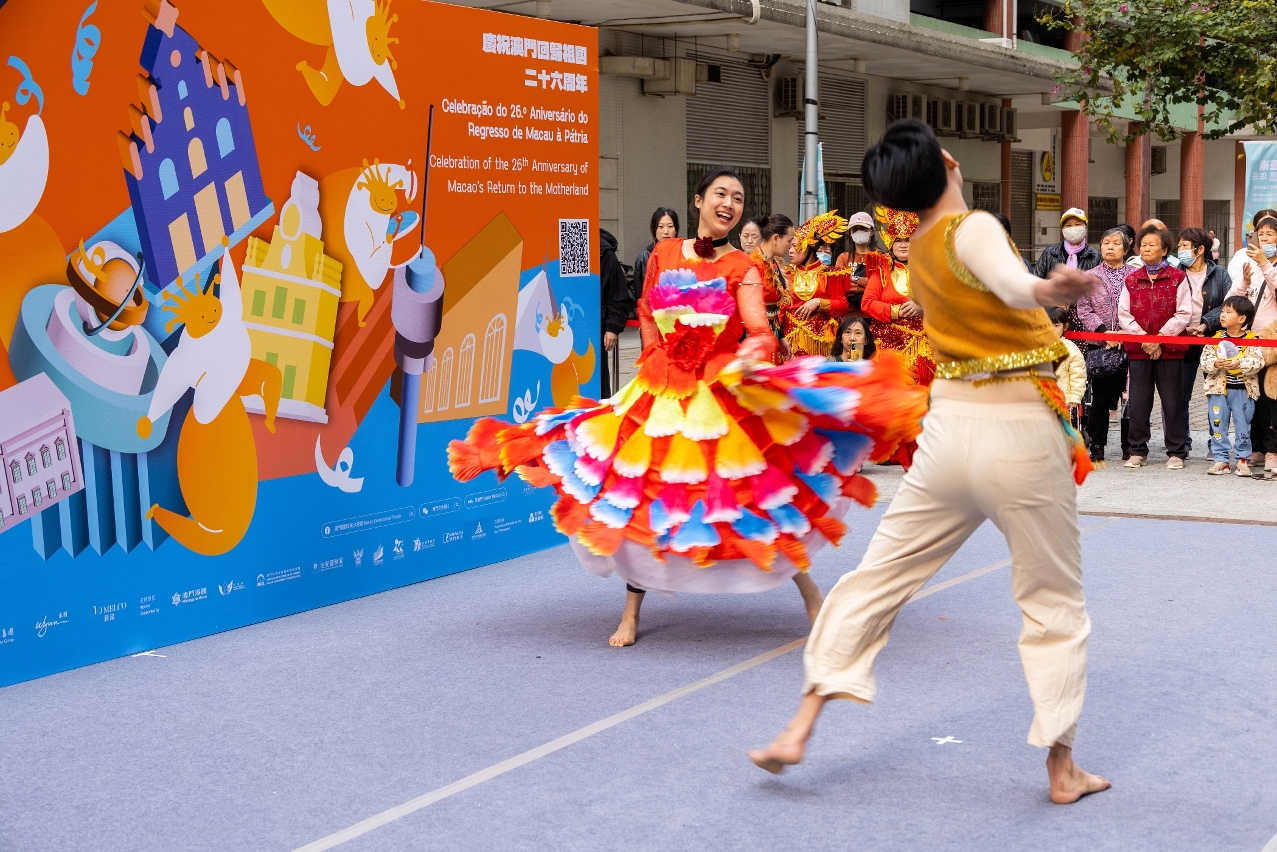 由文化局、澳娱综合度假股份有限公司、金沙中国有限公司、美高梅、银河娱乐集团、永利渡假村(澳门)股份有限公司及新濠博亚娱乐联合主办,庆祝澳门回归祖国二十六周年“2025澳门国际幻彩大巡游”将于3月23日举行,为让文化资源下沉社区,今日(3月16日)分别在佑汉街市公园及绿杨花园休憩区上演艺术嘉年华,让居民率先感受大巡游盛事的热闹气氛。