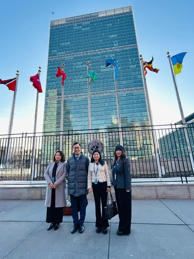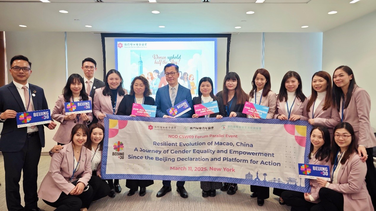 联合国第69届妇女地位委员会年度会议于3月10日在美国纽约联合国总部召开,国务院妇女儿童工作委员会副主任黄晓薇率全国妇联、外交部、香港和澳门特区共同参会。澳门特区政府社会工作局邓玉华副局长、家庭及社区服务厅李丽萍厅长,联同澳门妇女联合总会邝玉球副会长及宣传文秘科王子奇助理主任,代表澳门随中国代表团参与会议。