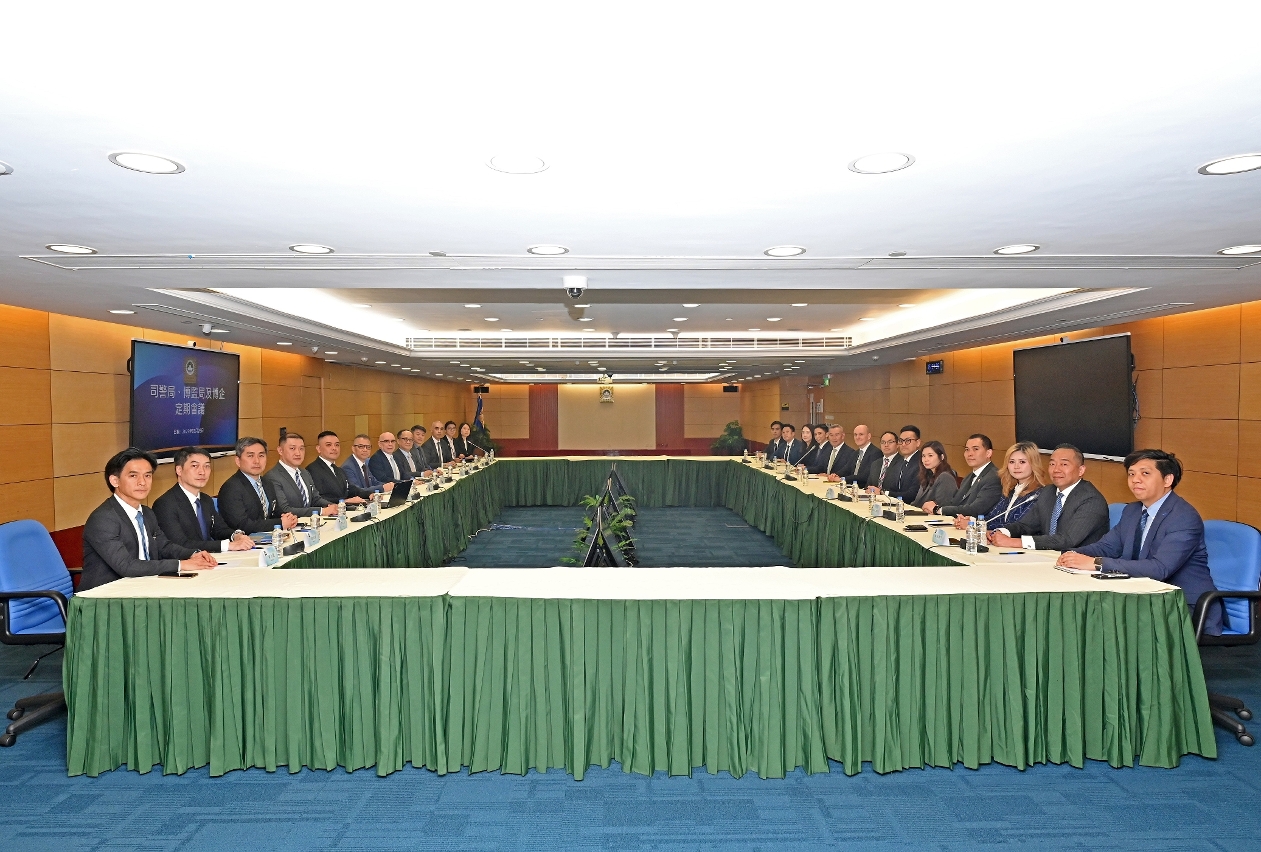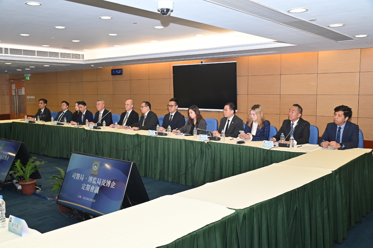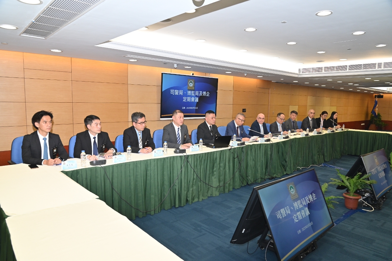 司法警察局联同博彩监察协调局与六间博企保安部门举行定期工作会议,就娱乐场保安协作机制、犯罪趋势分析及智慧监管应用等议题深入交流,进一步强化三方合作,以促进澳门博彩业持续健康发展。