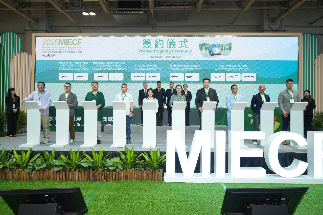 “2025年澳门国际环保合作发展论坛及展览”(2025MIECF)于今天(29日)顺利完成三天会期。展会期间共进行近450场商业配对;签约仪式上安排逾50份签约项目;并有8家企业于展会期间正式落户澳门。