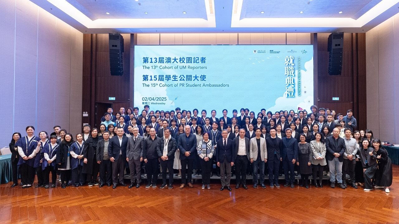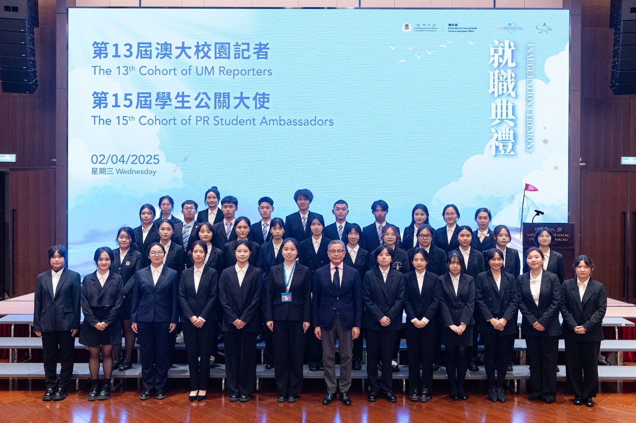 澳门大学第13届校园记者和第15届学生公关大使举行就职典礼。今届共有74名校园记者和学生公关大使就职,并有20名表现突出的学生获颁发“十大杰出校园记者”及“十大杰出学生公关大使”奖状。同场还举行了庆祝学生公关大使成立15周年仪式,历届学生公关大使出席见证计划的丰硕成果。